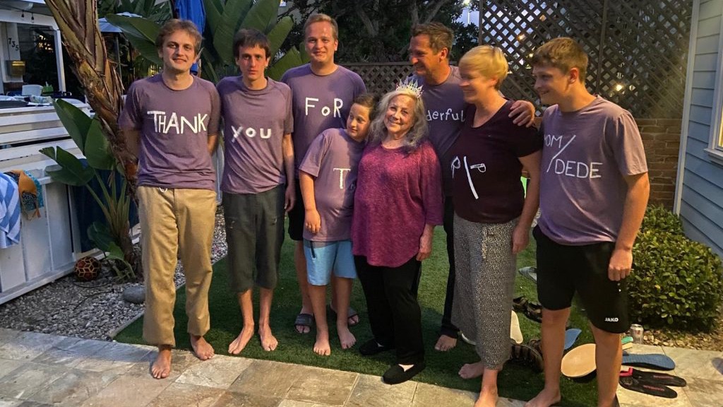 weil wir dede morgen nicht mehr sehen (die fliegen morgen um 7, sie freut sich schon so auf ihren pudel! :‘•)), haben wir heute noch eine überraschung vorbereitet. papa hat lila t-shirt’s gekauft, die wir dann noch schnell bemalt haben. und eine krone und schokokuchen hat sie bekommen. as she deserves!