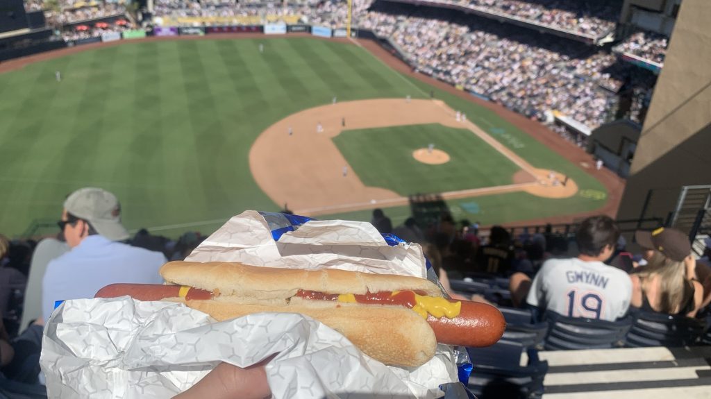 wir hatten tolle plätze ganz oben in der letzten reihe! verstanden haben wir am anfang eigentlich garnichts, musste googeln, wieviel es steht. irgendwas mit neun innings, bases und so. hier ist sport nicht so emotional aufgeladen, es gibt keine oberkörperfreien männer die rumschreien. besoffen ist da auch niemand. das ganze ist eher ein hyperkapitalistisches familienfest. alles ist voll mit irgendwelchen stores, essen überall, die hälfte der leute sind kinder, es gibt baby race, irgendwann sind auf einmal alle aufgestanden und es wurde die hymne gesungen?? irgendwie gruselig das alles, aber auch interessant, sport so zu konsumieren.