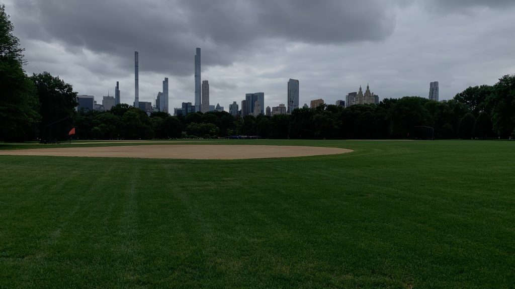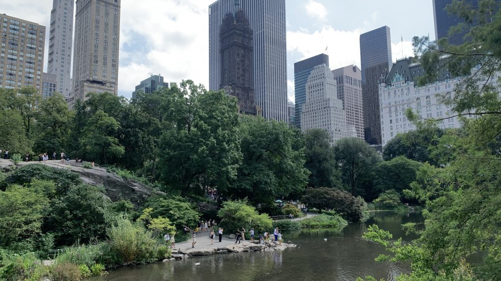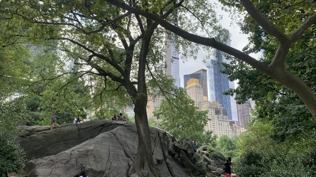 irgendwann sind wir dann am süd-ende vom central park angekommen. da ists noch richtig voll und wuselig, aber je weiter man reinläuft, desto ruhiger wird es. und dann spielen auf einmal leute pickleball zwischen felsen und bäumen, und baseball und federball und eigentlich bewegen sich die leute dort ganz viel oder garnicht. es gibt so viele bänke! ich finde städte sollten einen offiziellen öffentliche bänke index haben. den öbi. leipzig hat einen öbi von 3 oder so..?