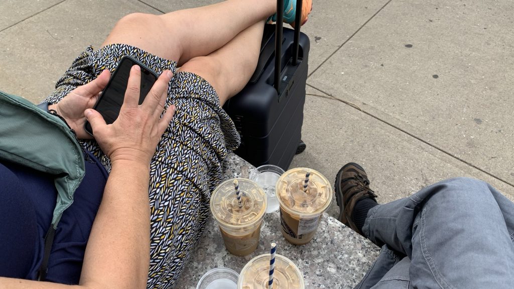 vorm museum wurde nochmal mit kaffee gestärkt und auf paul gewartet. mama und papa trinken den kaffee jetzt auch kalt