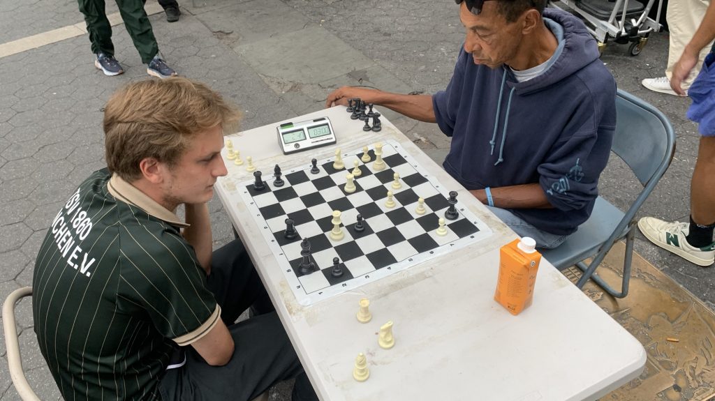 zurück sind wir dann metro gefahren, ihr wisst ja: never go back. diesmal wäre ich sogar wirklich gerne noch durch die upper east side gelaufen aber meine füße haben schon wehgetan. wir sind am union square ausgestiegen und paul hat im vorbei gehen noch einen chess hustler 3:0 abgezogen.